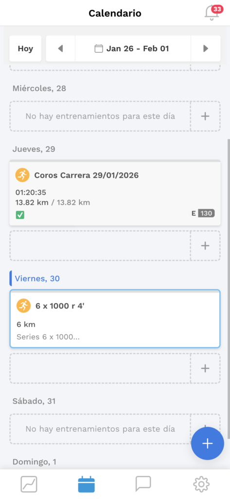 Tus deportistas tendrán acceso instantáneo a los entrenamientos planificados y a todos los detalles de sus sesiones realizadas.
