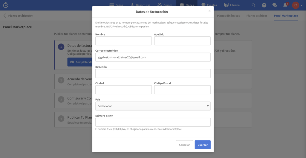 Para vender en el Marketplace necesitas una cuenta de Stripe Connect, actualmente disponible en: la mayor parte del Espacio Económico Europeo (UE, Reino Unido, Noruega, Suiza), Estados Unidos, Canadá, Australia, Nueva Zelanda, Brasil, México, Japón, Singapur y Hong Kong. Si tu país todavía no está en la lista, no te preocupes — estamos trabajando para añadir más opciones de pago y que entrenadores de cualquier parte del mundo puedan vender sus planes.